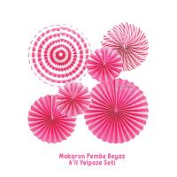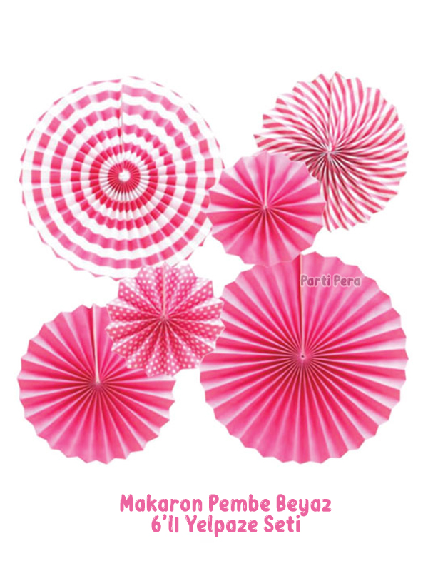 - Altı adet makaron pembe renkli yelpaze süs, özel günlerde ve kutlamalarda şık bir dekorasyon sunar.