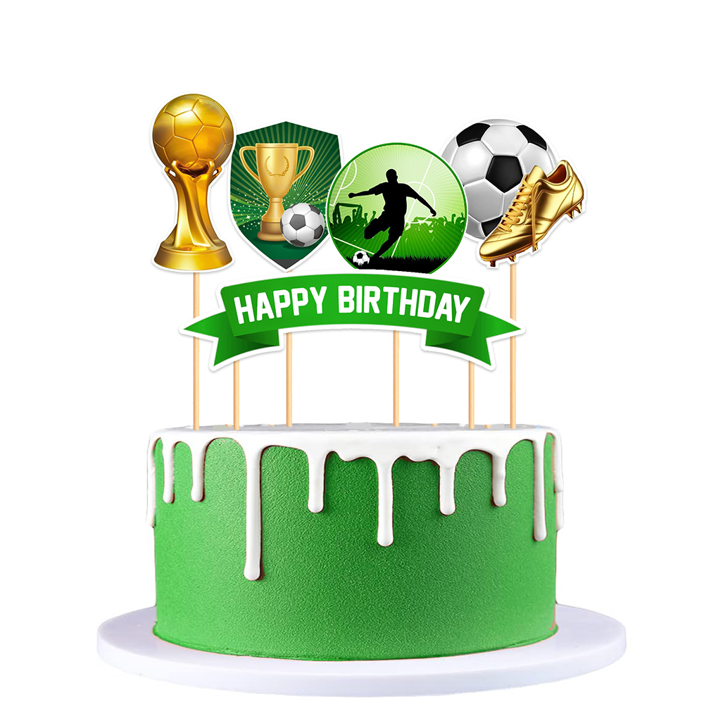 - Futbol temalı doğum günü partileri için ideal, 5 parçadan oluşan pasta süsü seti.