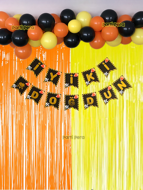 inşaat Temalı Doğum Günü Balon Seti Turuncu Sarı Arka Fon Parti Perdesi Doğum Günü Parti Seti