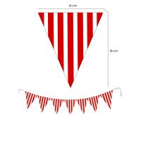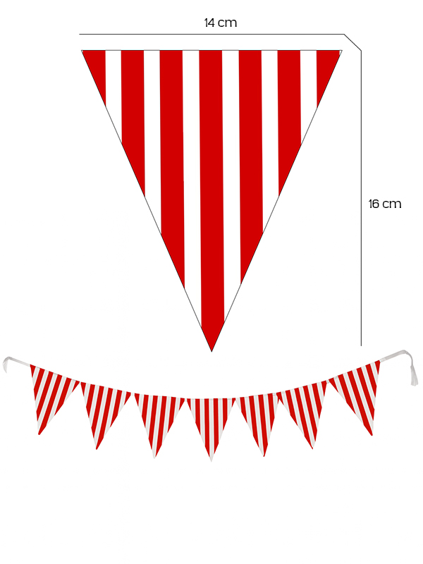 - - Kırmızı ve beyaz çizgili tasarımı ile dikkat çeken üçgen flama, etkinliklerinizde şık bir görünüm sağlar.