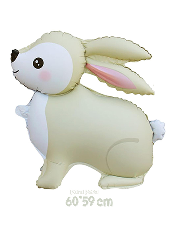 - 60 x 59 cm boyutlarındaki geniş tasarımıyla dikkat çeken krem renkli tavşan folyo balon, partilerinizde ve özel gününüzde göz alıcı bir atmosfer yaratır.