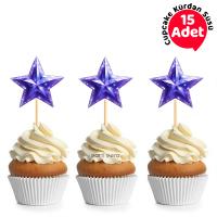 Mor Yıldız Şekilli Cupcake Kürdan Süsü 15 Adet