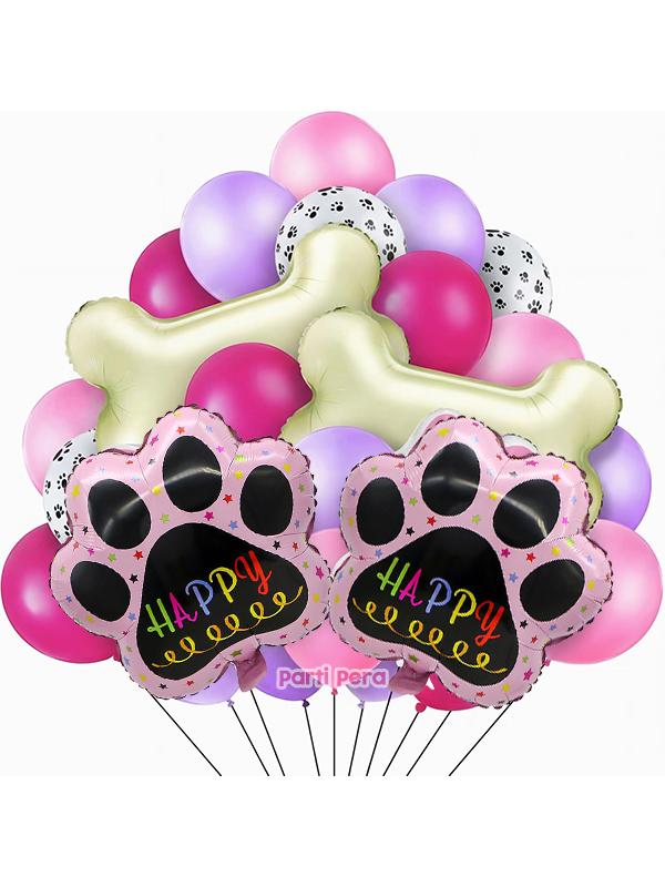Pet Kedi Köpek Doğum Günü Balon Seti Pembe Pati Folyo Balon Krem Kemik Folyo Balon
