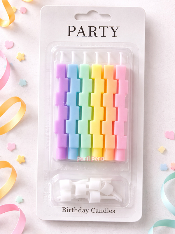 - 6 Adet mumdan oluşan set, çeşitli renk ve şekillerde tasarlanmıştır, böylece pastalarınız için farklı kombinasyonlar oluşturabilirsiniz.