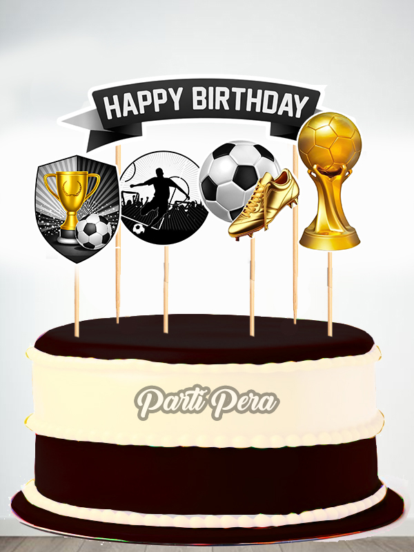 - Futbol tutkunları için özel tasarım: Siyah beyaz renkleriyle futbol temalı pasta süsü, doğum günü kutlamalarınıza spor ruhu katıyor.