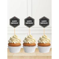 Siyah Happy Birthday Cupcake Pasta Kürdan Süsü 15 Adet