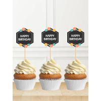 - SİYAH HAPPY BİRTHDAY YAZILI ŞEKİLLİ CUPCAKE KÜRDAN SÜSÜ