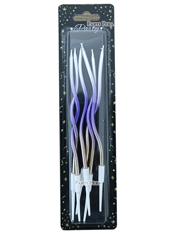 Spiral Mor Gümüş Şampanya Renk Pasta Mumu 16 cm 6'lı Paket