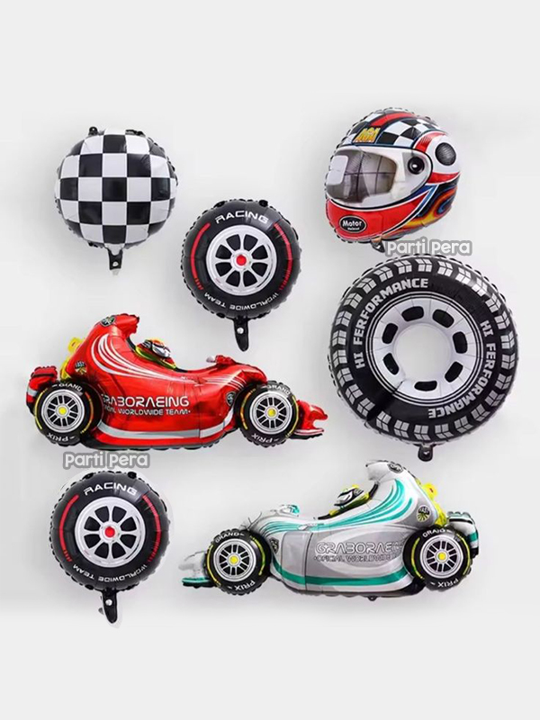 - Kask, tekerlek ve lastik şeklindeki folyo balonlar ile doğum günü partilerinize heyecan katın.